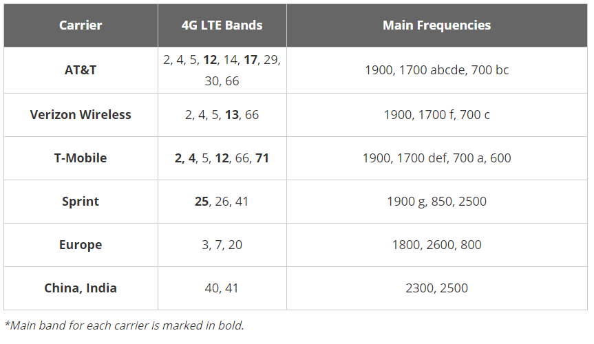 Als je dus een AT&T simkaart gebruikt is het belangrijk dat je toestel in ieder geval band 12 en 17 ondersteunt, anders heb je waarschijnlijk slecht of geen bereik.