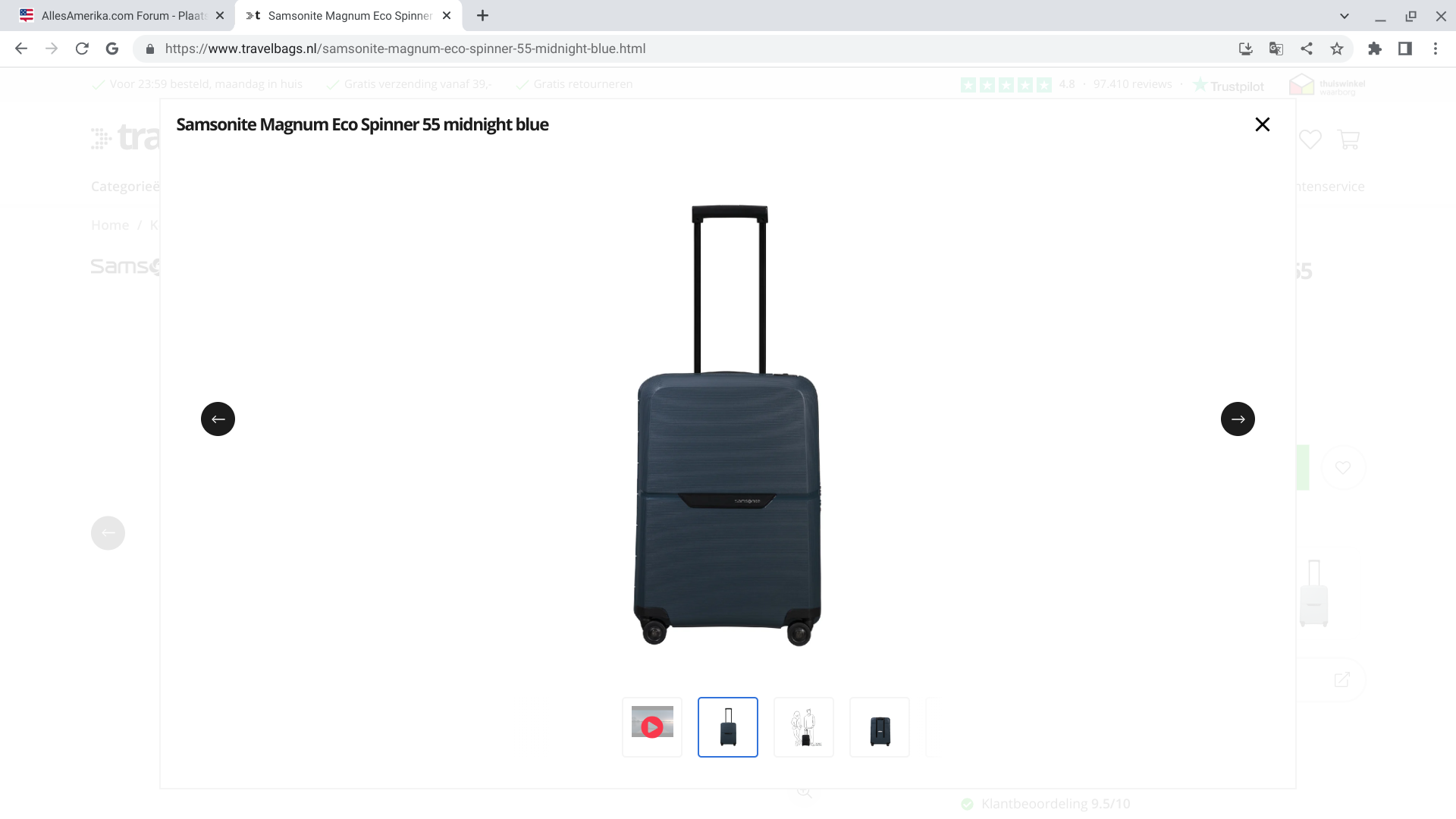 Het is geen garantie dat die trolley als handbagage mee mag.