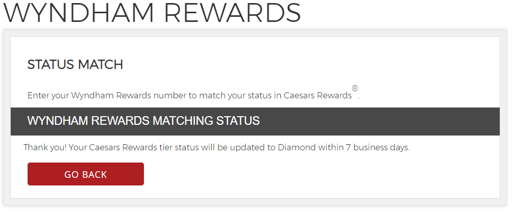 Terug tijd om wyndham naar Caesars te matchen folks!