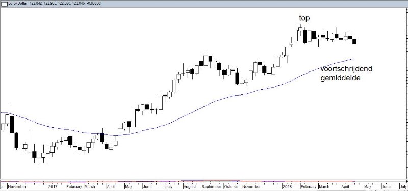 En dan nog dit. Voor ons is kopen of verkopen van dollars meestal een eenmalige aangelegenheid. Een trader zal op basis van zijn of haar analyses meerdere transacties doen. Als de koers in de verwachte richting gaat is er natuurlijk niets aan de hand. Het zal echter ook ooit gebeuren dat de koers niet de verwachte richting uitgaat. Dat hoeft voor de trader geen probleem te zijn, die zal de positie snel sluiten en zo het verlies beperken. Hij of zij kan dit beperkte verlies goedmaken door andere, wel winstgevende transacties: cut your losses short and let your profits run.
