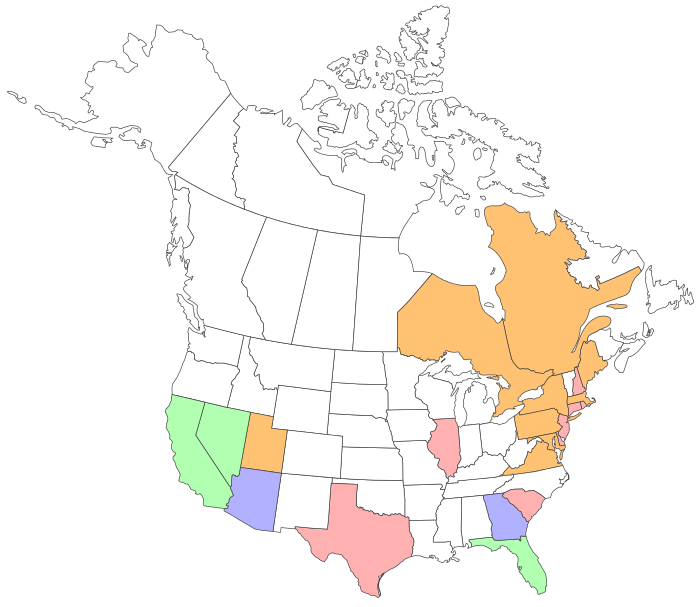 California, Nevada, Arizona, Utah, Colorado, Wyoming, Montana, Idaho, New York & Hawaii.