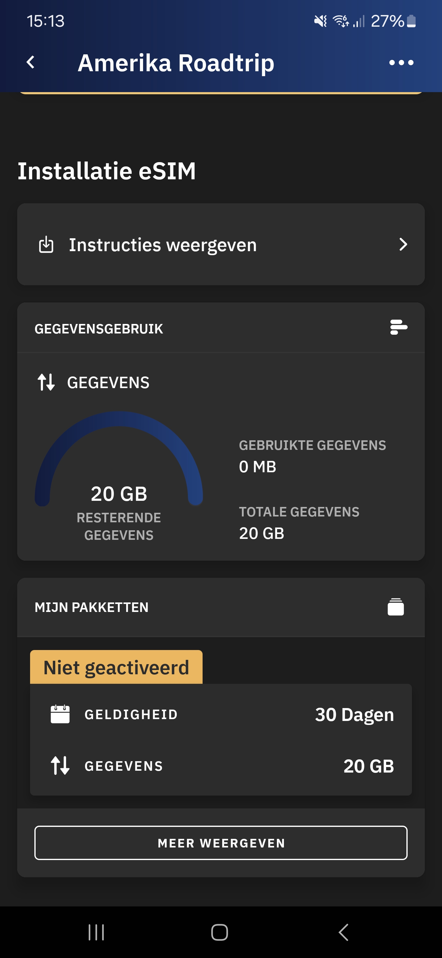 Ik heb de esim ergens in februari geïnstalleerd en de apn gegevens ingesteld maar meer ook niet. Heb toen een snelkoppeling op me hoofdscherm gemaakt om in de us makkelijk te kunnen zien hoeveel mb er nog over is. Die cirkel die om de 20gb heen zit was hele tijd rood en nu was hij ineens blauw, en vandaar dat ik ben gaan twijfelen of alles nog wel goed was. Maar heb idd aangeven dat we in nl wonen en ook aangeven dat de esim dan ook onmogelijk verbinding kan maken met het us netwerk.De sim was idd voor 30 dagen