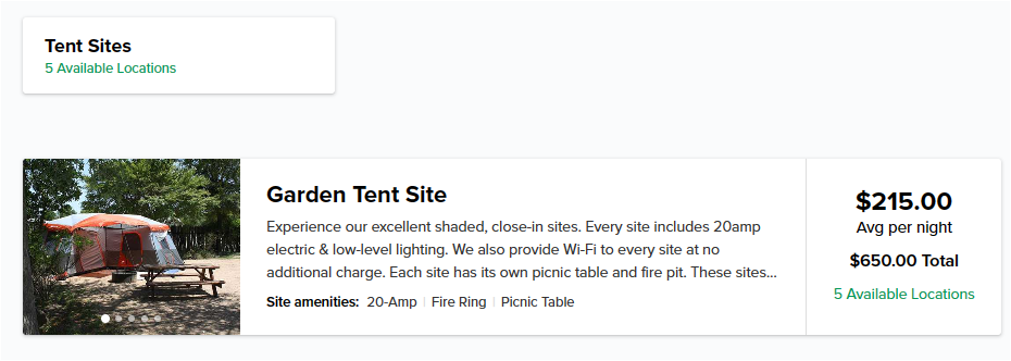 Sommige commerciële campings kan je al wel reserveren, maar die vragen dan soms zonder blikken of blozen rustig $215 voor een nacht in die periode, zoals deze Yogi Bears Camping in Fredericksburg.