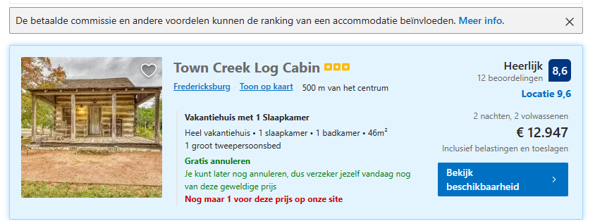 $12.947 voor twee nachten! Oké, het is wel een 'heel vakantiehuis' (met 1 slaapkamer en 1 badkamer 8) )En als je dan kijkt naar de recensies van deze topaanbieding.)