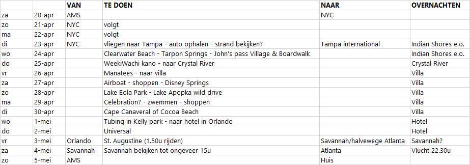 We hebben er ook voor gekozen om (nu) een kleiner gedeelte van Florida te zien om wat rust in het schema te houden. Dus we gaan niet naar Miami/Everglades/Keys.