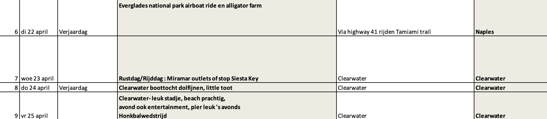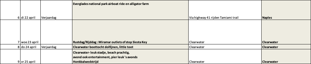 Zaterdag 26 april hebben we een villa in Orlando voor een aantal nachten dus die ligt al vast.