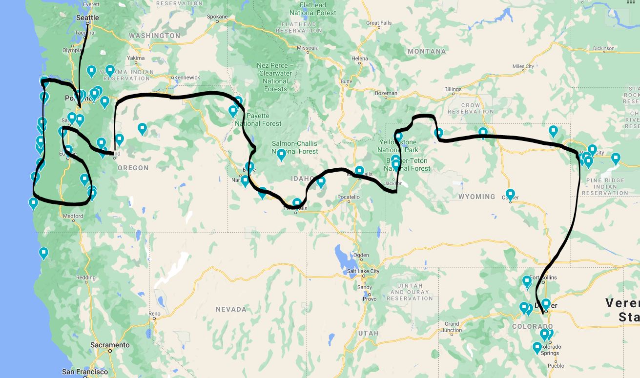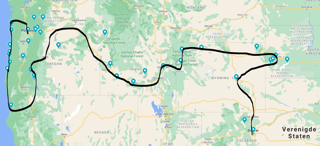 We hebben in het begin een beetje een rare bocht in de route om naar Corvallis te gaan. Hier willen we naar een football wedstrijd en moeten er dus precies op dag 10 zijn. snap dat dit als een beetje onlogisch kan overkomen.