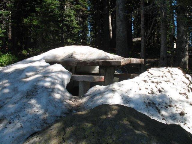 Picknicktafel bij Paradise in Mount Rainier op 24 juli(!)