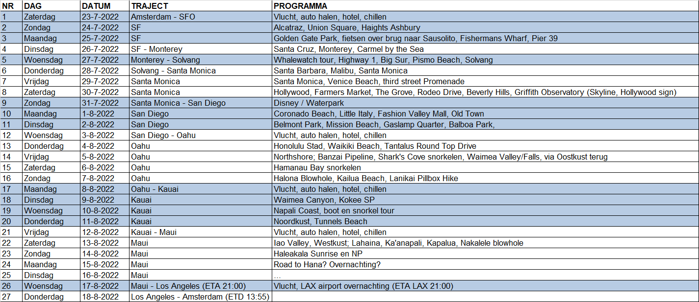 na 3 jaar plannen en wijzigen is het volgende week dan eindelijk zover; onze droomreis California + Hawaii !!