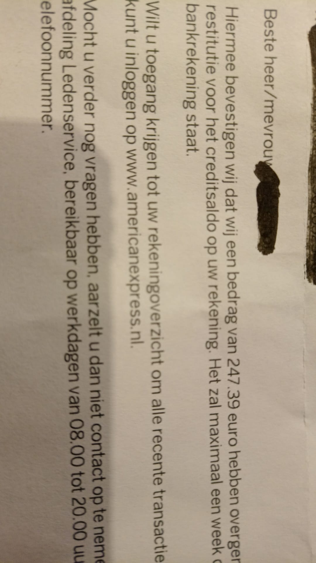 En inderdaad ik heb de mail beantwoord, en zag het bedrag snel weer terug. Dit was begin september.