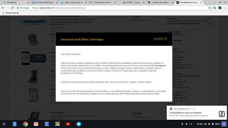 En als je dan naar beneden scrollt staat daar bijv : " However Hertz offers Loss Damage Waiver (LDW) an optional service, which for an additional daily charge relieves you of all financial responsibility for the loss or damage to the rental car, whether or not you have insurance to cover such damage, provided the car is used in accordance with the terms of the Rental Agreement."