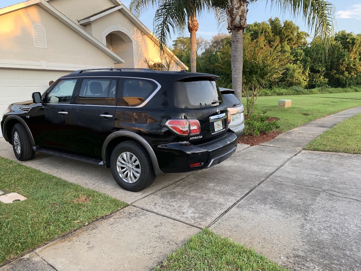 Best veel keuze in Executive Aisle. 1 Charger, totaal 3 Armada’s, Ford F150. Oog viel meteen op de grootste uit de garage, 6.800 miles op teller. Best veel opties: keyless entry (heerlijk), groot navigatiescherm, achteruitrijcamera + ‘piepjes’, adaptive cruisecontrol, bluetooth (telefoon koppelen), Bose sound system, stoelverwarming (… in Florida), USB + climate control achterbank, 3e rij achterbank automatisch wegklappen, kofferbak automatisch open en dicht ... kortom met de V8 lekker cruisen. Heerlijke auto. Ook bij de Racetrac zagen ze me graag komen, want zuinig wassie niet echt. Zoals beloofd door Bedeve, je loopt de garage in, kiest een mooie auto uit, rijdt naar exit booth, laat rijbewijs en creditcard zien, poortje open en rijden maar.
