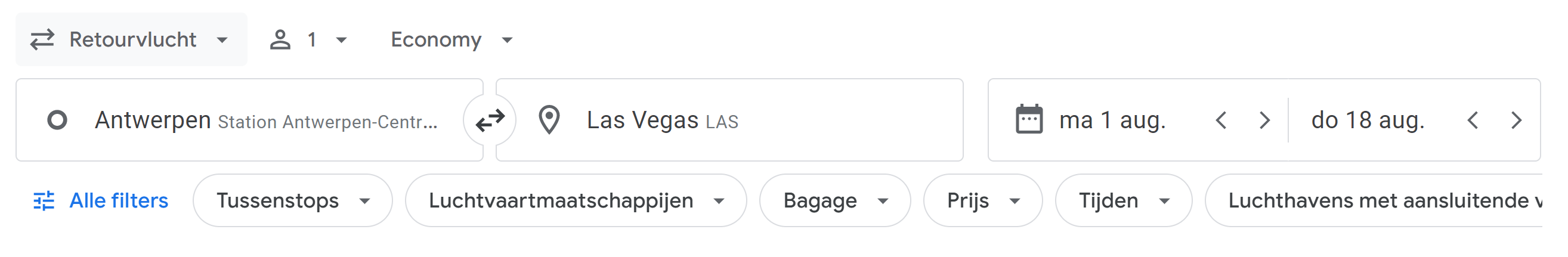 Via Google Flights kan je deze zoeken, maar het valt me op dat er minder opties te zien zijn. Bijv. mijn voorkeursoptie voor treinreis 's avonds en dan de vlucht de volgende ochtend, vind ik niet bij Google Flights. Bij Expedia.nl dan weer wel. Bij andere OTA's is Antwerpen niet als vertrekplaats op te geven.
