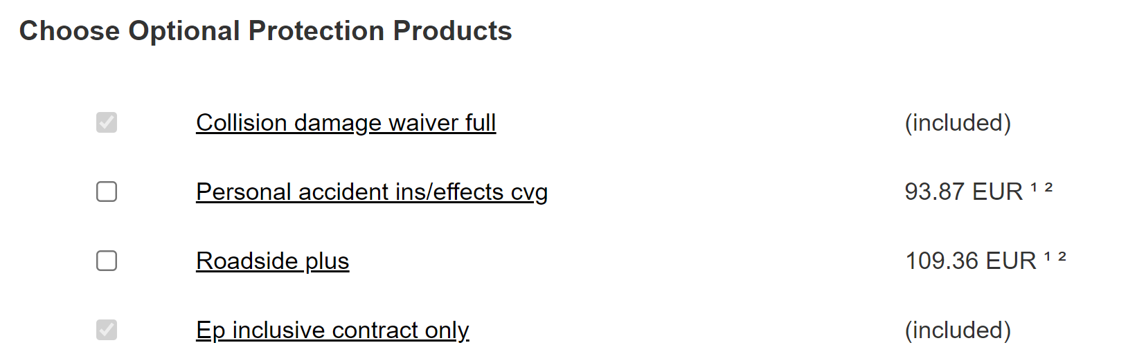 For retail rentals only secured with Extended Protection within the cost of the rental (excluding any liability protection or insurance coverage provided under a commercial contract), the following shall apply: Extended Protection (EP) (Where available): Owner provides Renter or any AAD with third party liability protection in an amount equal to the minimum financial responsibility limits applicable to the vehicle (the Primary Protection). EP also provides additional third party liability protection, through an excess liability policy, with limits of the difference between the Primary Protection and a combined single limit of $1 million per accident for bodily injury and/or property damage to others arising out of the use or operation of the Owner rental vehicle by Renter or an AAD, subject to the terms and conditions of the policy. EP includes UM/UIM coverage for bodily injury and property damage (only where required by law for property damage) in an amount equal to the minimum financial responsibility limits applicable to the Vehicle (the Primary Protection), and additional coverage, through an excess liability policy, with limits for the difference between the statutory minimum underlying limits and $100,000 per accident (for rentals commencing in New York, UM/UIM limits are $100,000 per person/$300,000 per accident; for rentals commencing in Hawaii, the UM/UIM limits are $1,000,000 combined single limit) or state mandated UM/UIM limit, whichever is greater. OWNER AND RENTER REJECT ANY ADDITIONAL UM/UIM COVERAGE TO THE EXTENT PERMITTED BY LAW. EP, including UM/UIM benefits is provided only when Renter or any AAD are driving the Vehicle. No claim for UM/UIM may be made due to the negligence of the driver of the Vehicle. EP coverage is in effect only while another AAD or Renter is driving the Vehicle within the United States and Canada; coverage does not apply in Mexico. ADDITIONAL POLICY EXCLUSIONS INCLUDE: (A) BODILY INJURY OR DEATH TO RENTER, ANY AAD, OR TO THE BLOOD RELATIVES OR FAMILY OF RENTER OR AN AAD, IF SUCH RELATIVES OR FAMILY RESIDE IN THE SAME HOUSEHOLD WITH RENTER OR WITH AN AAD; (B) PROPERTY DAMAGE TO THE RENTAL VEHICLE; (C) FINES, PENALTIES, EXEMPLARY OR PUNITIVE DAMAGES; (D) BODILY INJURY, DEATH OR PROPERTY DAMAGE EXPECTED OR INTENDED FROM THE STANDPOINT OF THE INSURED; AND (E) ANY OBLIGATION FOR WHICH THE INSURED OR THE INSURED’S INSURER MAY BE HELD LIABLE UNDER ANY WORKER’S COMPENSATION, DISABILITY BENEFITS OR UNEMPLOYMENT COMPENSATION LAW OR ANY SIMILAR LAW. (F) BODILY INJURY OR PROPERTY DAMAGE EXPECTED OR INTENDED FROM THE STANDPOINT OF RENTER OR AADS. Note: Any UM/UIM benefits paid are included in the $1 million combined single limit EP coverage and in no way increase the combined single limit amount referenced above. This insurance coverage is underwritten by Ace American Insurance Company. Report SLP Claims to: Sedgwick CMS, P.O. Box 94950 Cleveland, OH 44101-4950, Phone: 1-888-515-3132 Fax: 1-216-617-2928.