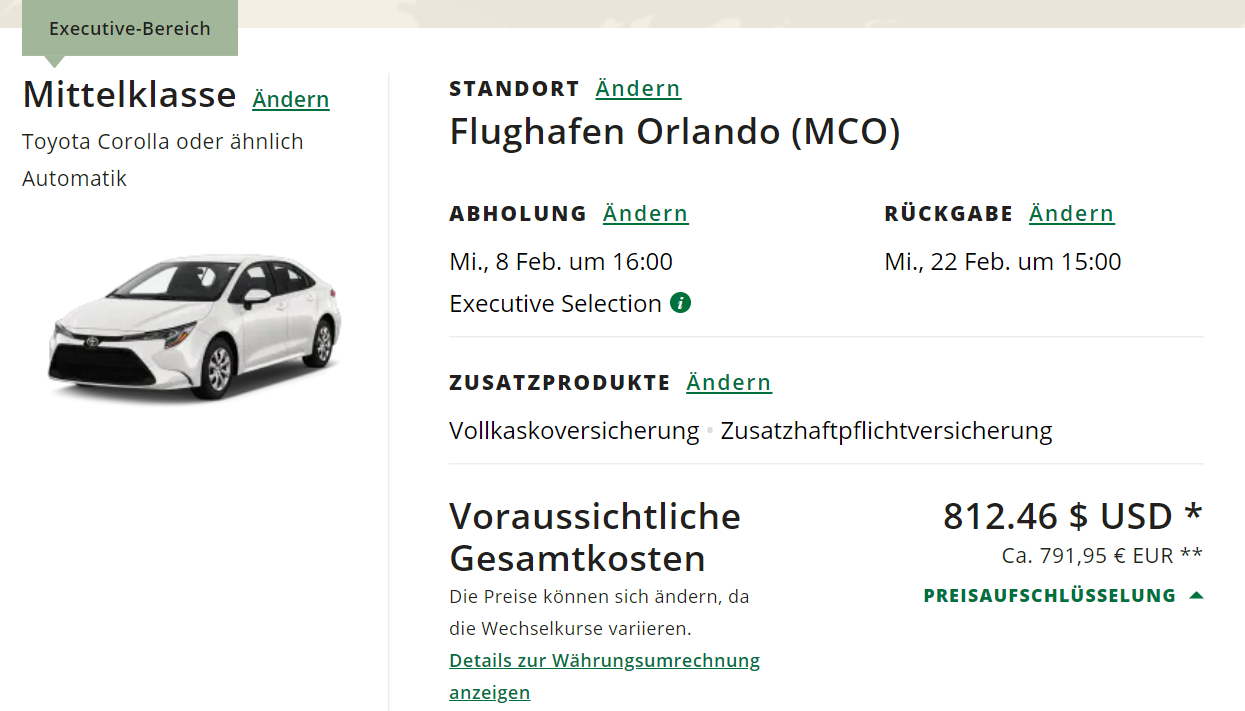 Zojuist via avis.IS een boeking gedaan voor de periode van 28 juli t/m 18 augustus. Ophalen in Austin en terug brengen Orlando.