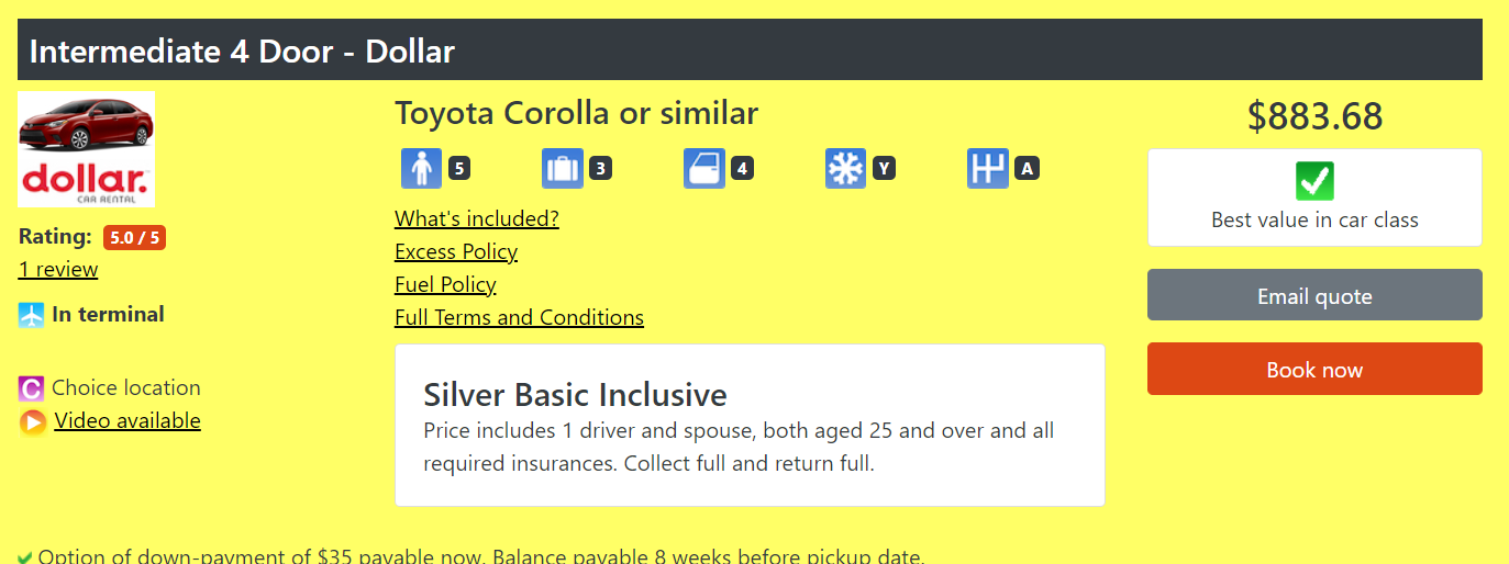 Normaal boeken wij een auto via drive usa, maar die zijn dus pak duurder.