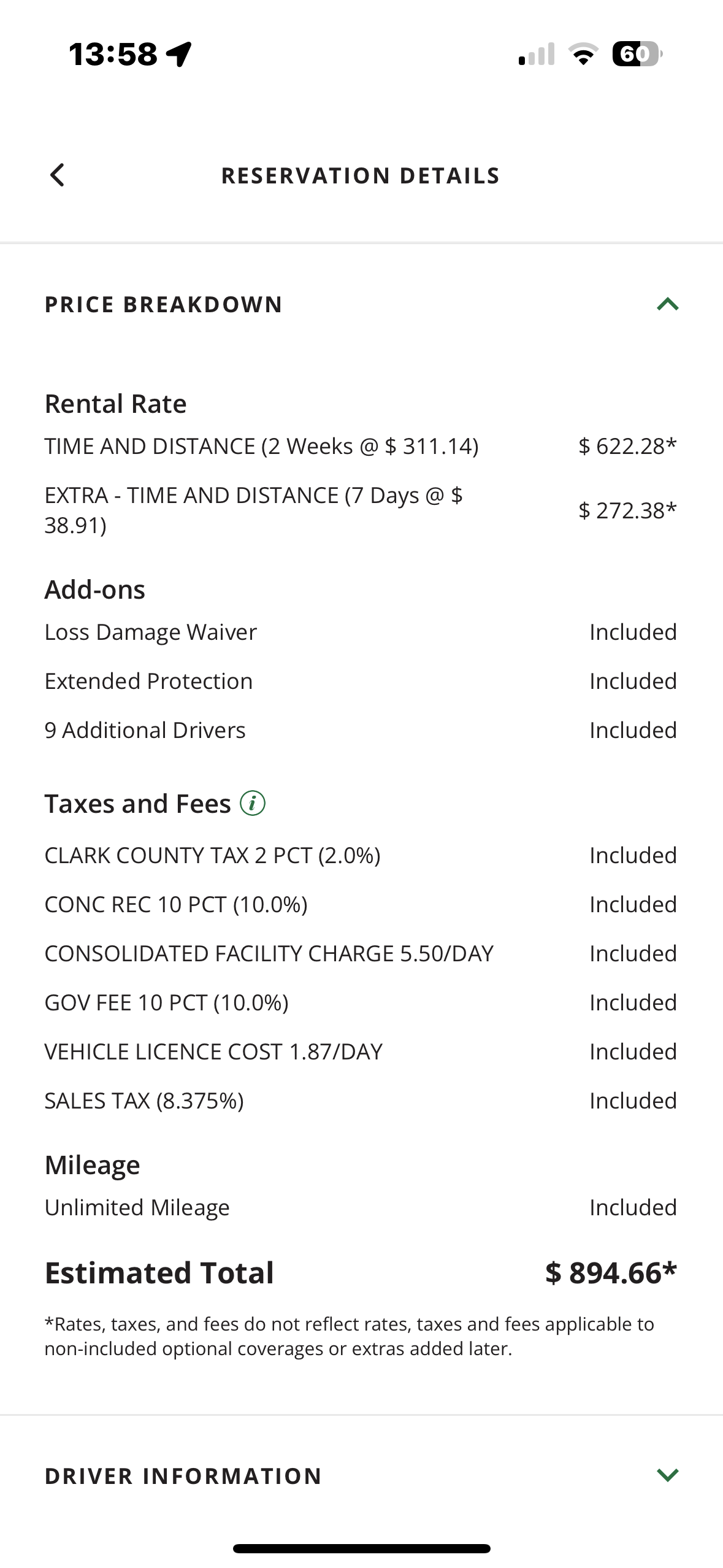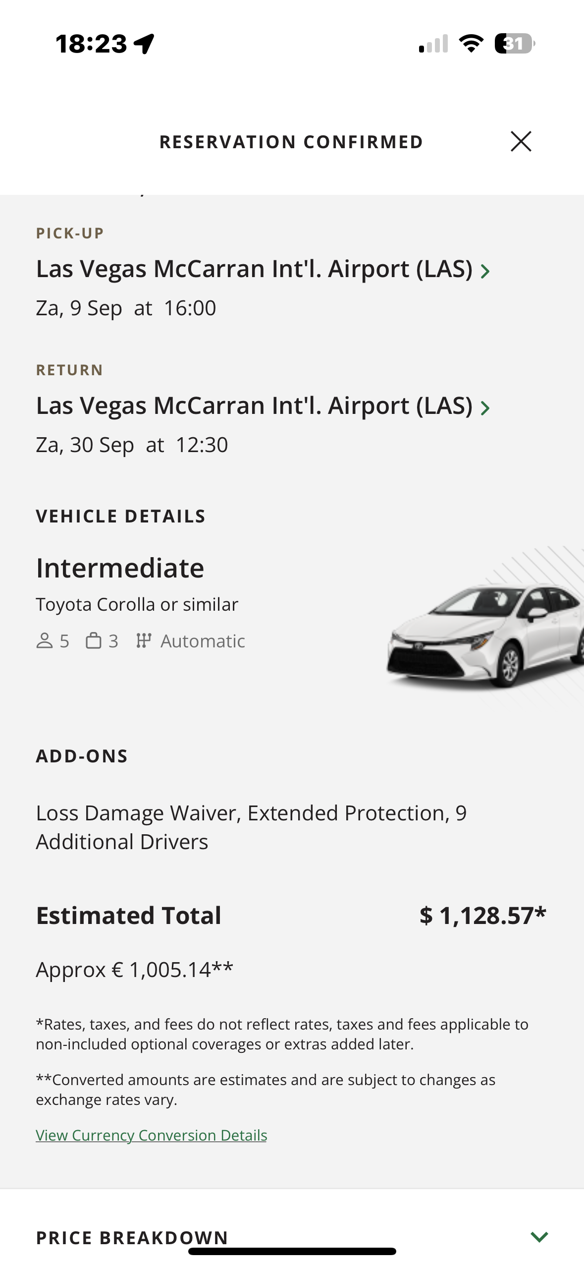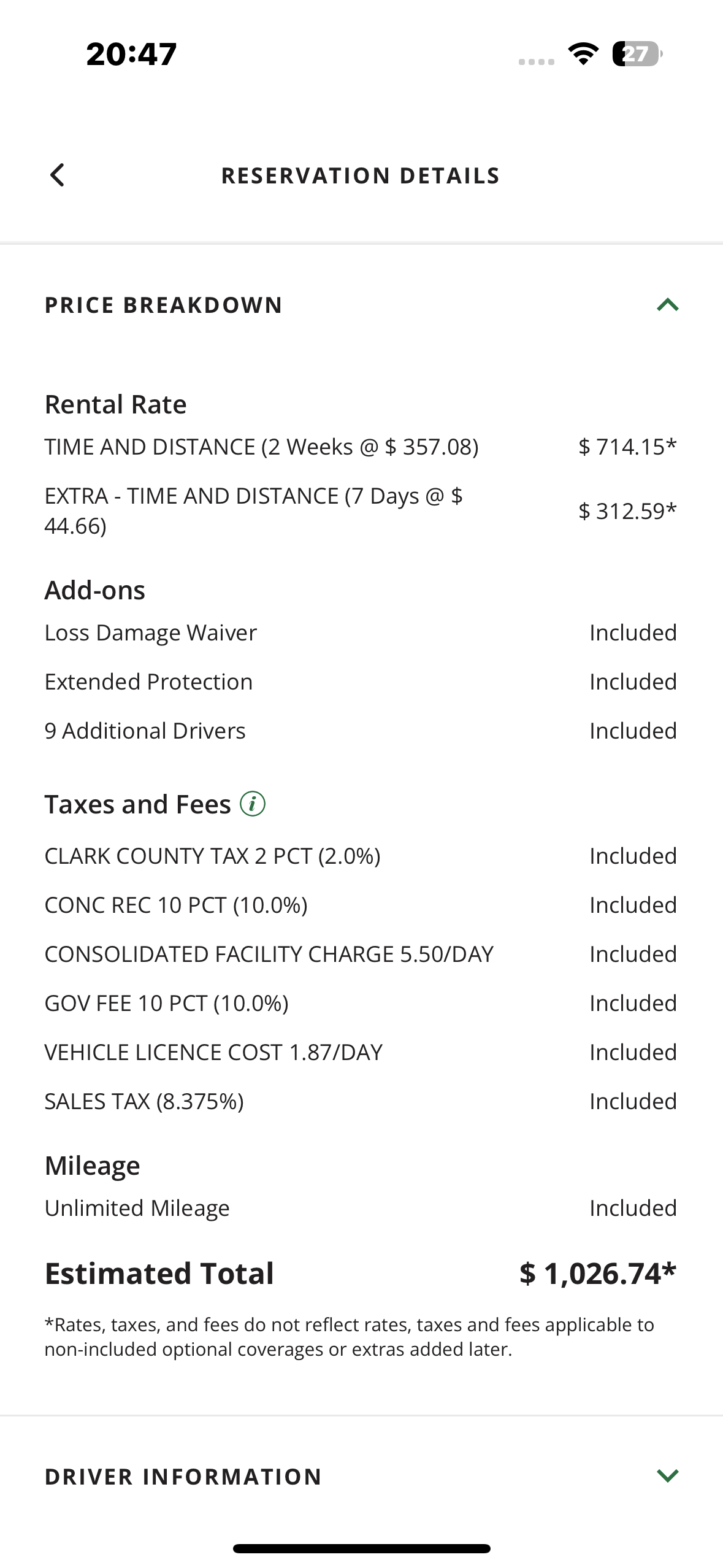 . Tarief is voor Florida in november nog niet lager. Zie overigens nu in app op het 2e scherm, na auto keuze, daar op EP klikkend, wel die 1mio staan. FYI @Trom.