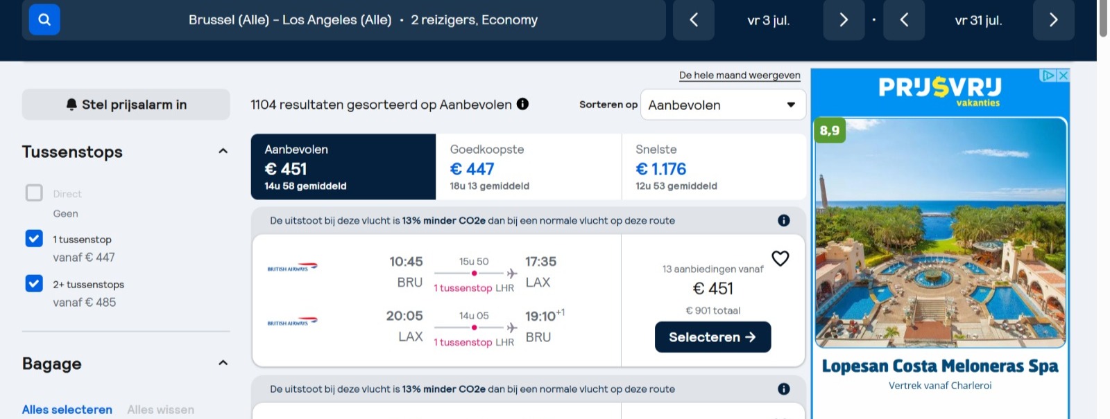 Voor wie in juli 2026 naar de VS wil: sla je slag. Ik zie tickets naar LA en SF voor minder dan 500 euro, zonder ruimbagage. Het is dat wij nog niet weten of onze kinderen nog mee gaan volgend jaar (dan 19 en 17) maar anders wist ik het wel