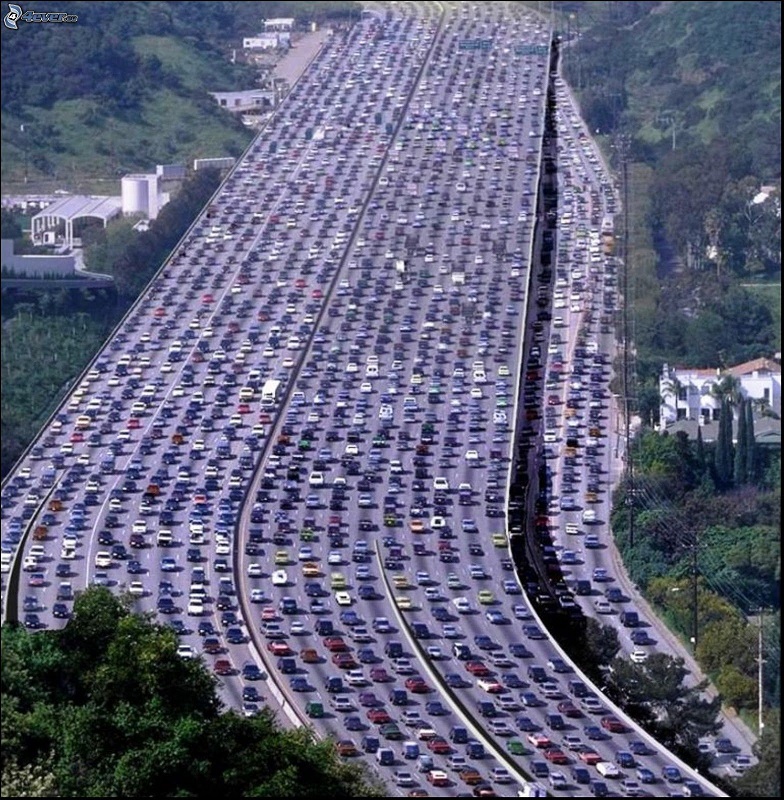 Je komt uit België, zie ik. Weleens in en rondom Antwerpen gereden? Vergelijk het verkeer in LA daarmee. Gewoon een drukke stad met veel auto's, niets meer en niets minder.