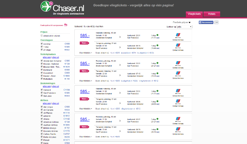 Waar heb jij gezocht? Ik heb cheaptickets, expedia, ebookers en nog een aantal sites gezocht maar geen resultaat.