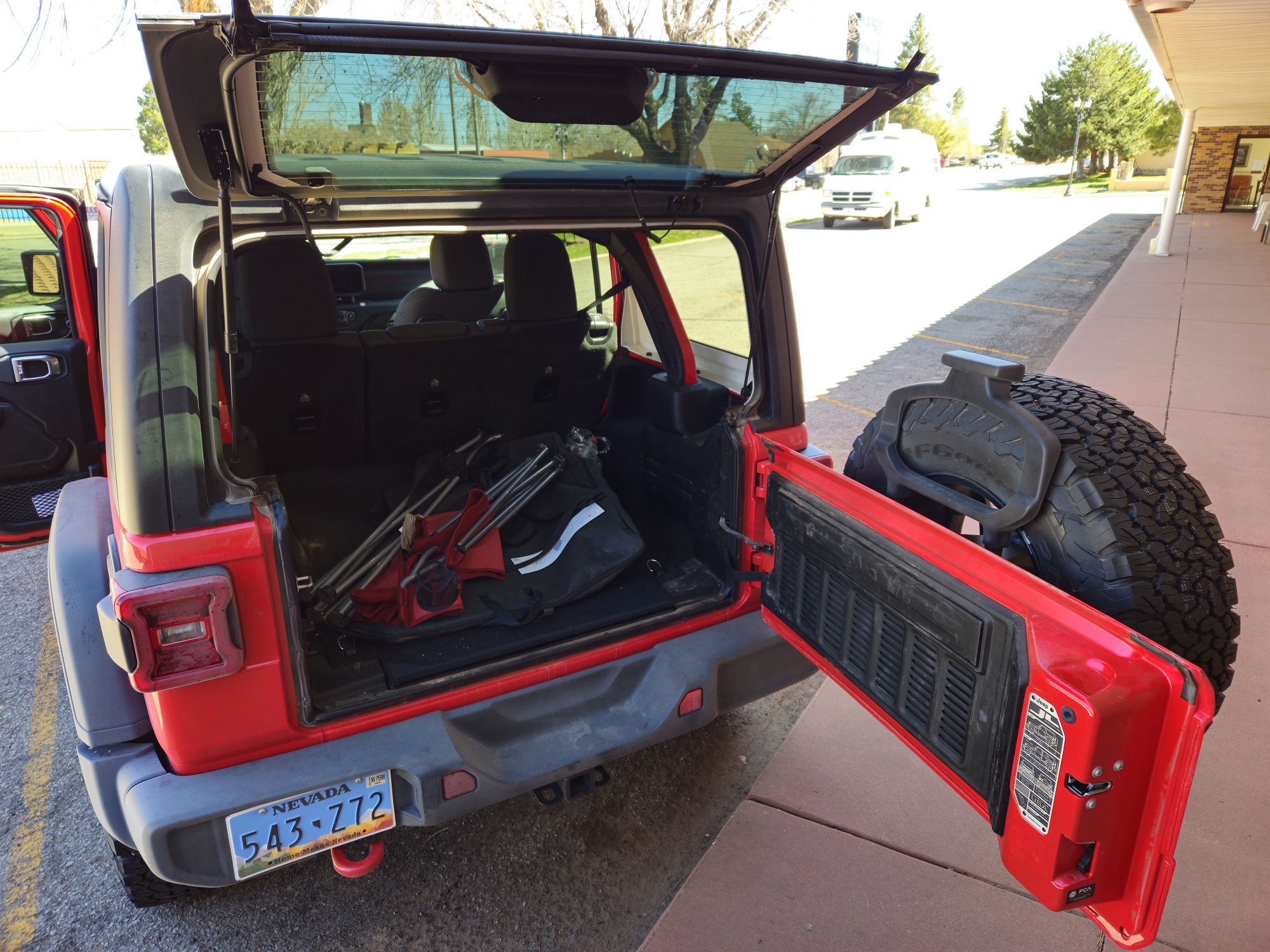 Toch was er 1 nadeel. Het blijkt, omdat een Rubicon is verhoogd, dat er bij het rijden op gravelwegen steentjes tegen de deurscharnieren kunnen komen. Dat was bij ons dus ook het geval en er zijn flink wat stukjes verf van de deurscharnieren afgesprongen.