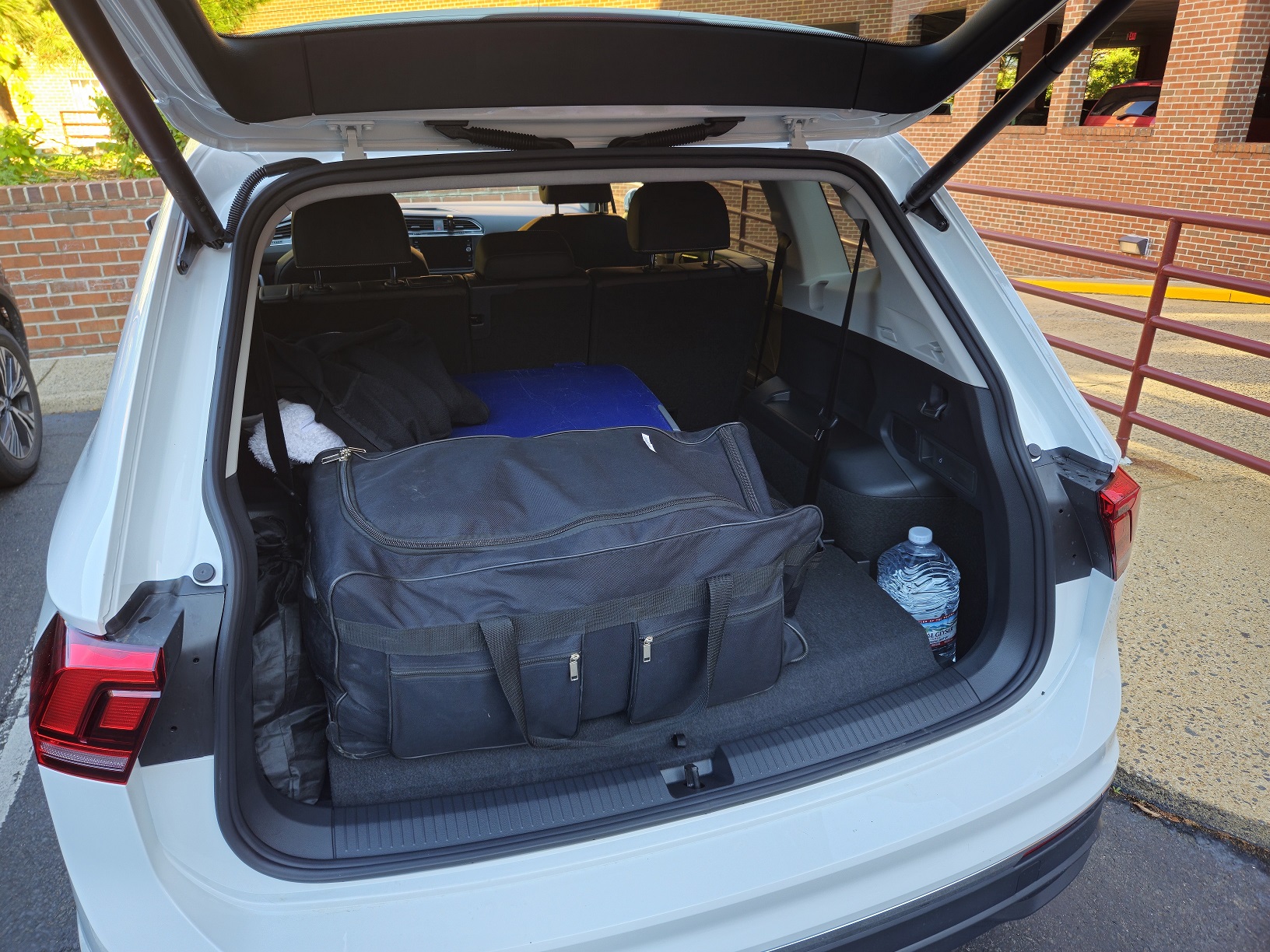 Vreemd dat alle SUV's geen kofferbakafdekking hadden, wat inbraak in de hand werkt. Gelukkig hadden we een donkerkleurige deken bij ons.