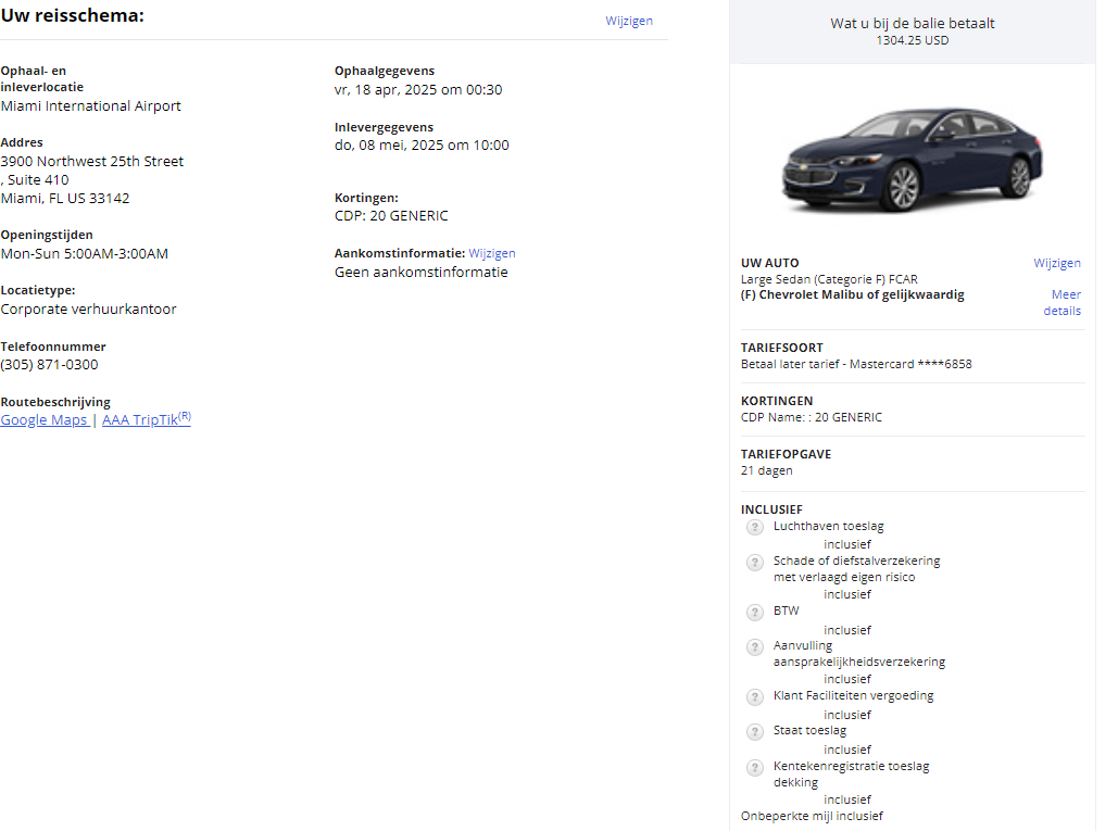Helaas zijn de prijzen voor de meivakantie inderdaad flink gestegen.. ik heb nu deze reservering staan. Iemand tips hoe het goedkoper kan? Of gewoon afwachten? In de prijs zit ook nog 60 dollar voor het autostoeltje. Daarbij ben ik inmiddels weer Five star bij Hertz.