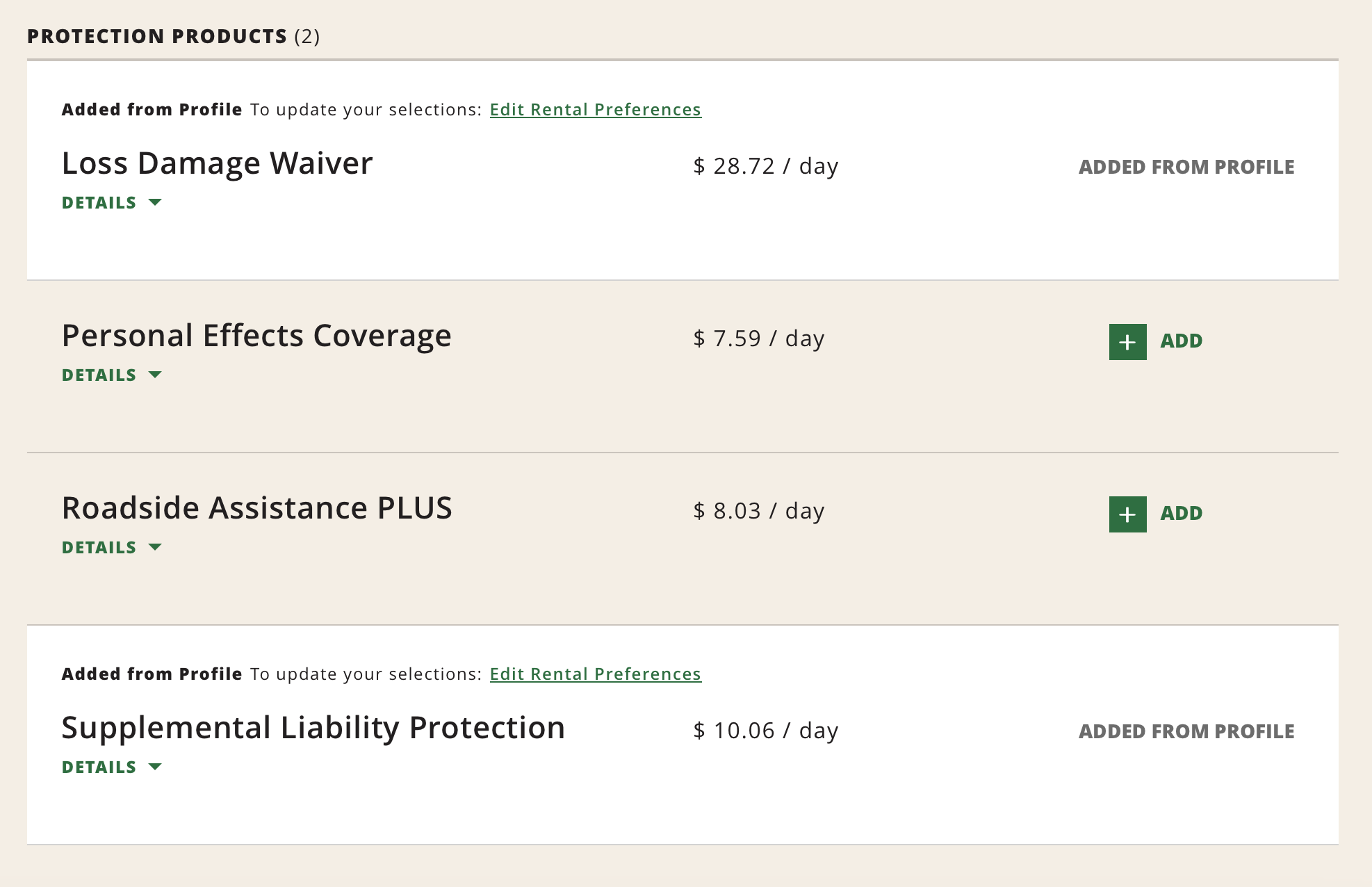 Vroeger zaten met de National Emerald code (5007125) alle verzekeringen er bij mij standaard bij. Sinds een paar jaar is dit niet meer het geval voor mij (als ik naar Florida (MCO/TPA/Mia) ga. Omdat ik voor werk eind augustus naar San Francisco (SFO) moet toch weer eens bij National gekeken. Voor SFO zitten alle verzekeringen er wel bij en voor Florida dus niet. Het is blijkbaar locatie afhankelijk geworden.