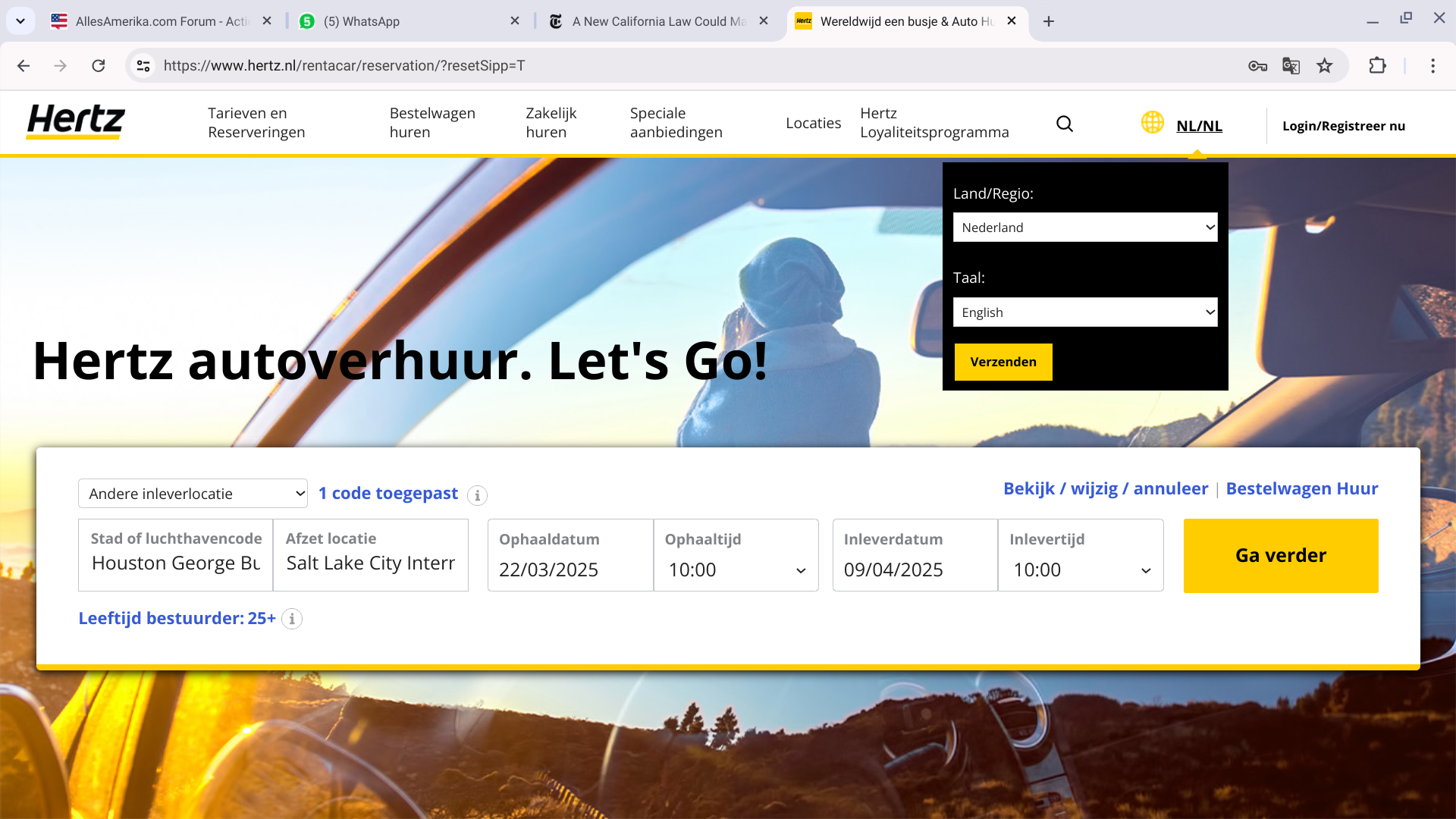Gelukkig zorgt Hertz er voor dat je ook Engels als taal kunt instellen