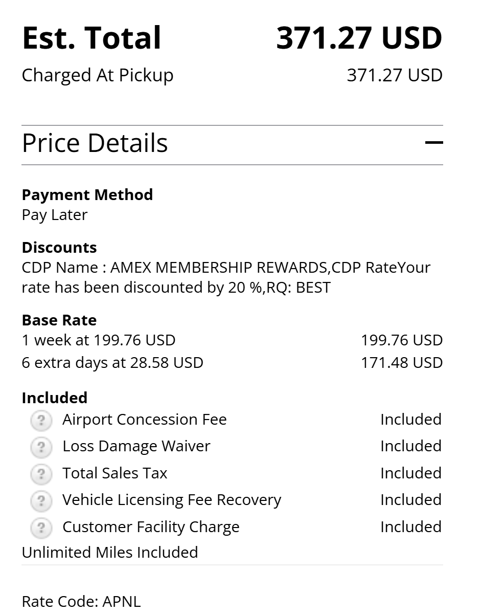 . Ik was niet ingelogd in mijn Hertz account. Dat maakte het verschil.