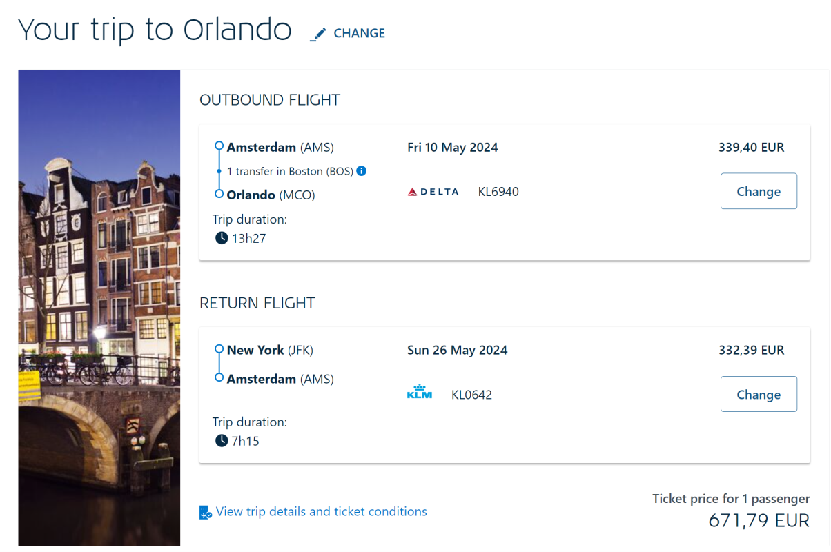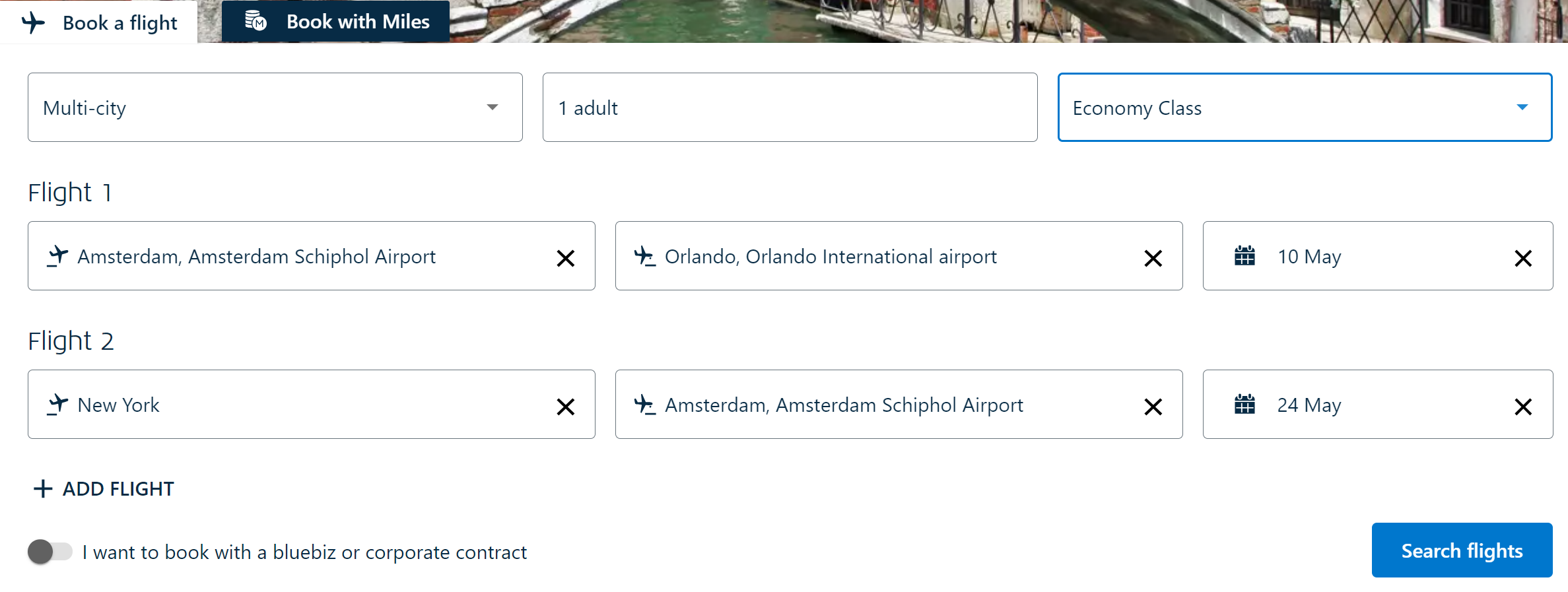 Waarom geen open-jaw ticket? Dus heen AMS-MCO en terug JFK-AMS. Je kan deze optie eens proberen door "multi-city"te kiezen in plaats van retour. Zolang je start en eind locatie maar gelijk zijn (= AMS) kan vanaf een andere locatie terugvliegen. Vaak is dat veel goedkoper dan 2 losse tickets boeken.Neil mcauly schreef: ↑26 sep 2023, 20:26Nu ben ik aan het zoeken om een retour NY te boeken en dan apart een enkele reis van NY naar MCO.