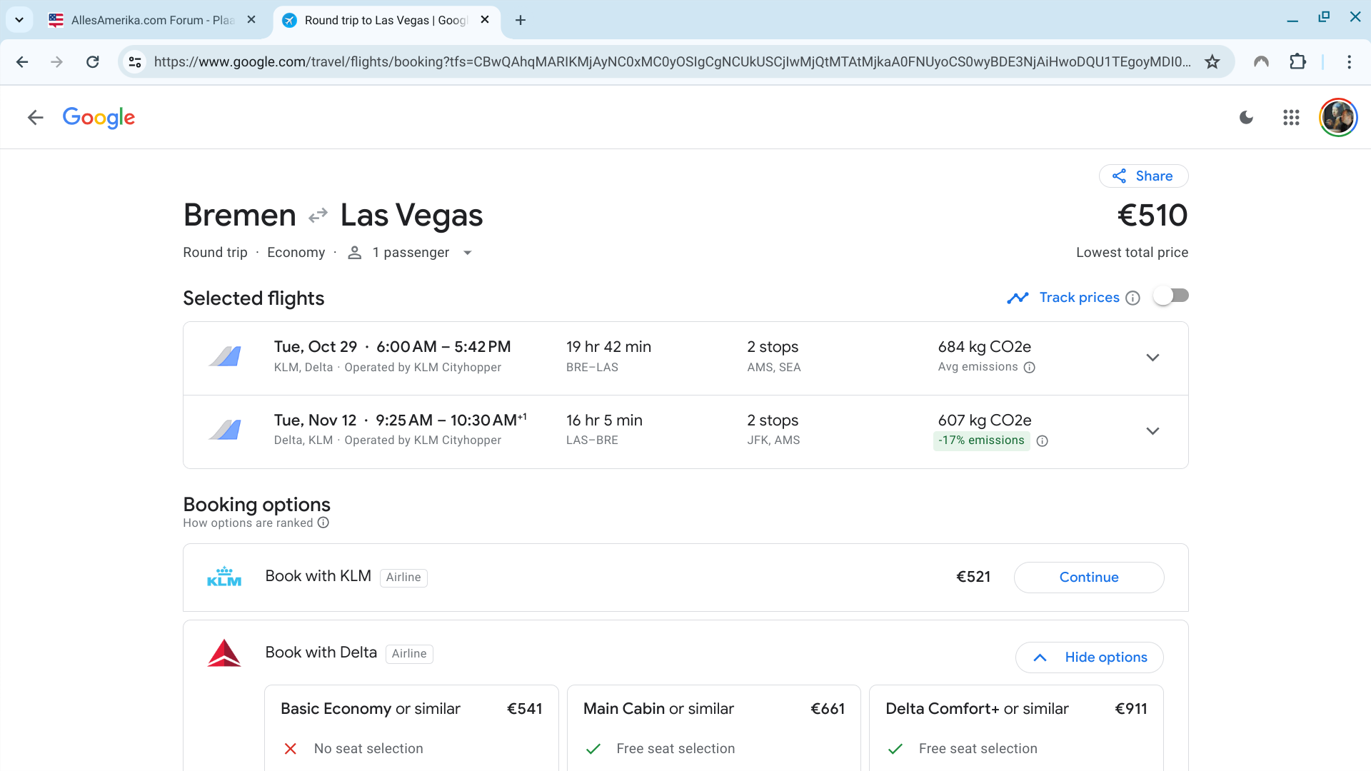 Als ik nu even snel zoek op Momondo kom ik rond 850 euro bij KLM uitgevoerd door Delta, wel ex koffers etc, terug rechtstreeks. Heen overstap op SLC