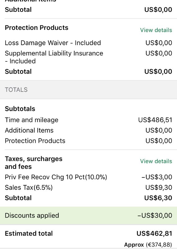 Nou, zelfs dan is het in de US vaak goedkoper om gewoon een rate voor toeristen met CDW/EP te nemen. En vergeet niet dat er grenzen zitten aan de dekking van Amex, met name rondom de aansprakelijkheid jegens de verhuurder. Die zal jou bij schade namelijk niet alleen aansprakelijk stellen voor de schade aan het voertuig, maar ook voor gederfde huurinkomsten en administratiekosten. In de voorwaarden van de verzekering staat voor deze dekking echter: