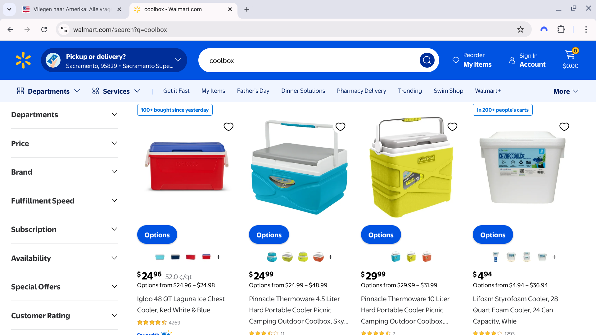 @Frikandel denk dat ik die fijn thuis zou laten. Het hangt er uiteraard van af wat voor afmeting koelbox je nodig hebt tijdens je reis maar wij hebben bij Walmart deze 2 kleinere Igloo coolers gekocht (ipv een grote koelbox).