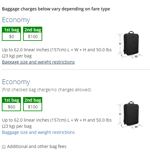 Ze hebben een bagage calculator toegevoegd en die laat inderdaad 2 ' economy ' tarieven zien zonder over basic economy te praten of boekingsklasses aan te geven:We revised some of our checked baggage policies on June 5, 2018. For the latest checked baggage updates, please review all relevant baggage pages before you travel and use the baggage calculator below to determine your baggage service charges.