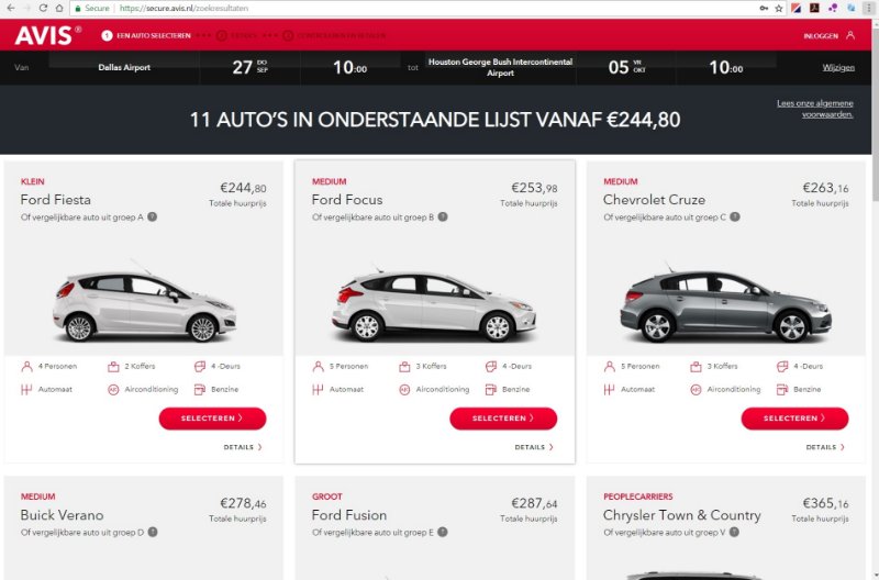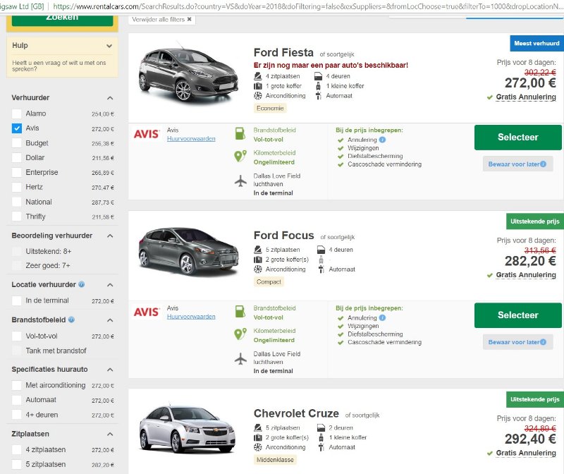 Vergelijken loont steeds.roelb schreef:Dat is dan bij Avis? Direct bij Avis is het goedkoper en betaal je EUR 263 voor ICAR: