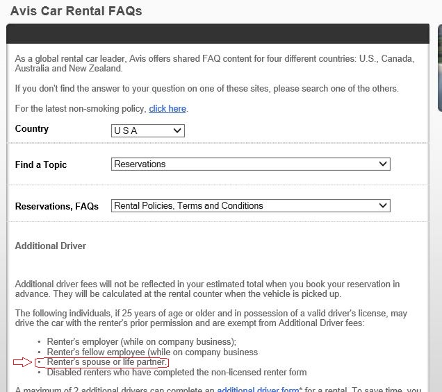 Ik heb met Ebookers of Expedia gebeld, dat weet ik niet meer en ook met AutoEurope. Zij geven aan dat een echtgenote niet gratis is. Ik moest aan de Engelstalig AutoEurope-mijnheer nog wel even uitleggen wat een spouse is... :o
