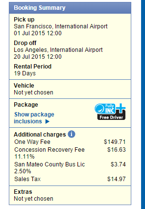Als ik de auto direct had meegenomen bij aankomst op het vliegveld van San Francisco, waren er geen drop-off kosten geweest.