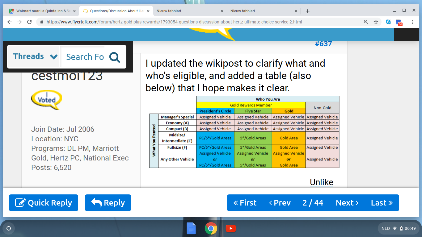 • Het programma bij Hertz noemt "Gold Rewards" en iedereen kan een Gold Account aanmaken. Voor de voordelen zie de 1ste post o.a. spouse als gratis bestuurder.
