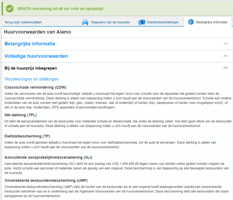 Ik kijk nu bij rentalcars.com maar zie bij geen enkele auto waar die aansprakelijkheidsverzekering erbij staan.