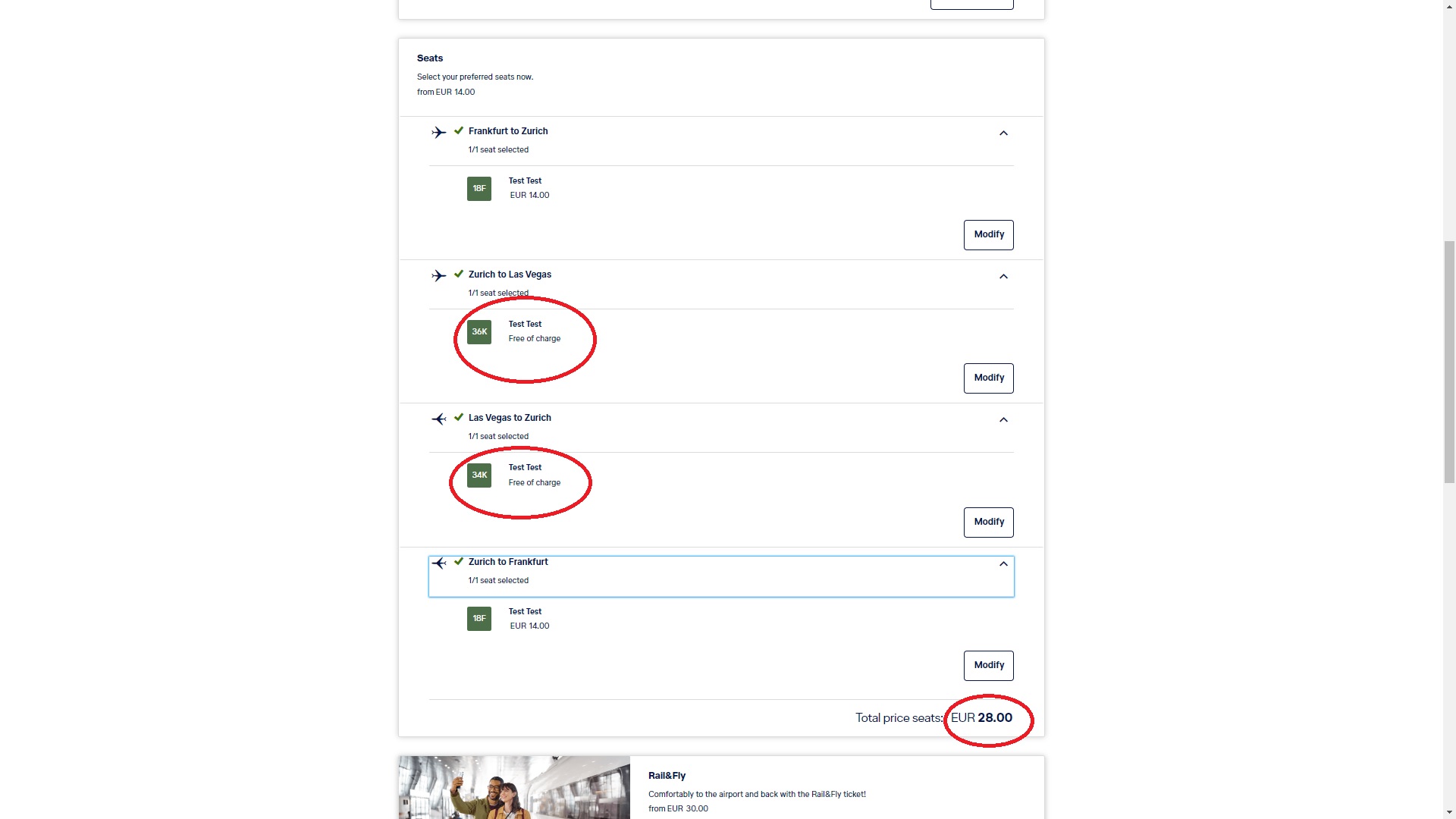Ja, er staat € 35,- totdat je bij het totaaloverzicht komt dan staat er free of charge en hoef je alleen maar te betalen voor de kortste vluchten. Ik heb geboekt via Lufthansa, ook daar nu weer een fake boeking gedaan:jeppiepruts schreef: ↑14 dec 2023, 16:17Als ik een boeking fake dan moet ik 35 euro per stoel betalen in economy light ZRH-LAS vv. Benieuwd waar je boekt en de melding 'free of charge' krijgt.