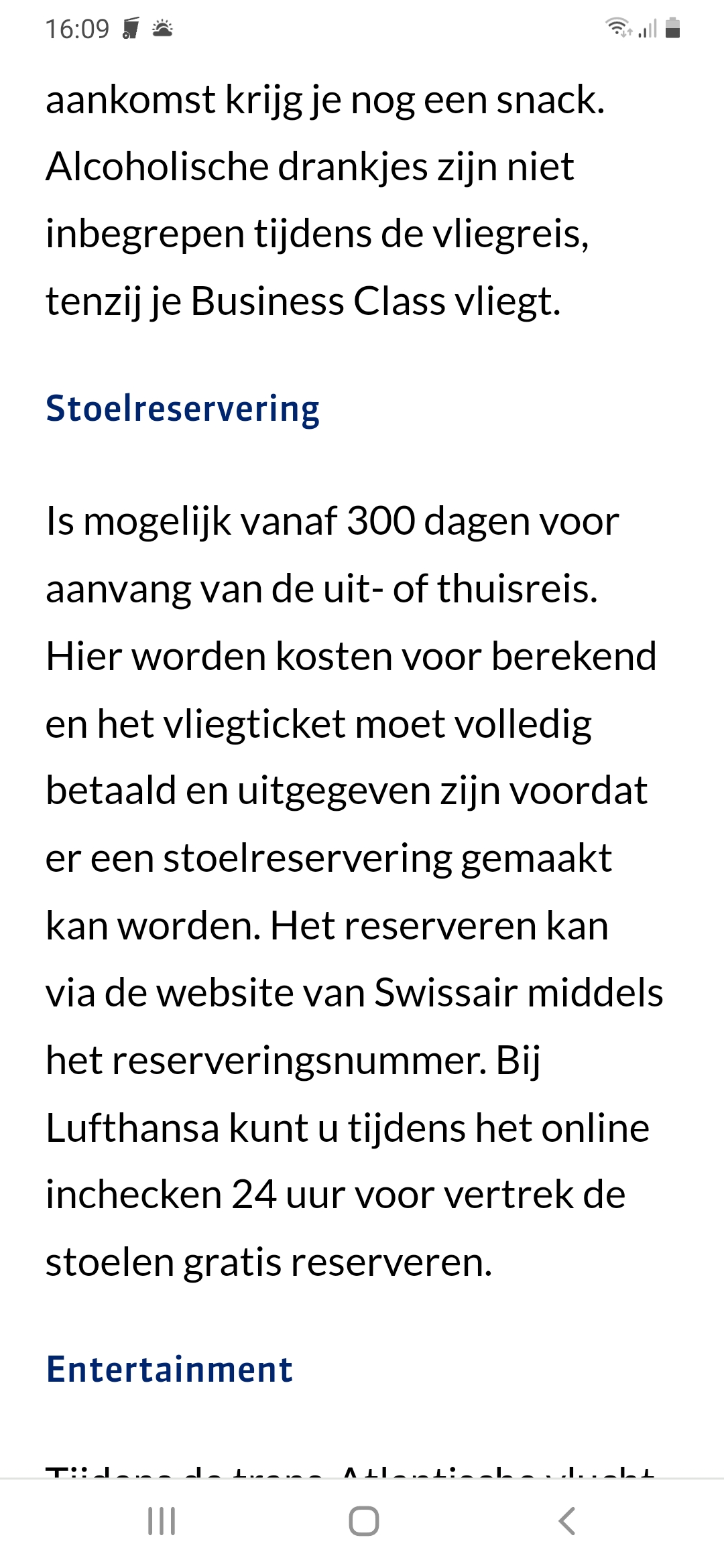 Bedankt voor je hulp! Ik ga het op deze manier proberenjeppiepruts schreef: ↑14 dec 2023, 17:49Ik geef je de grootste kans via Swiss. Jij kunt aantonen dat je met seat reservation hebt geboekt tenslotte...Als je de nadrukt daarop legt en vooral niet teveel ruchtbaarheid geeft aan het feit dat het je niks gekost heeft, heb je kans dat ze je gewoon op de stoelen zetten die je wilt (los van het feit dat ik vind dat Lufthansa dat ook zou moeten doen in dit geval....).