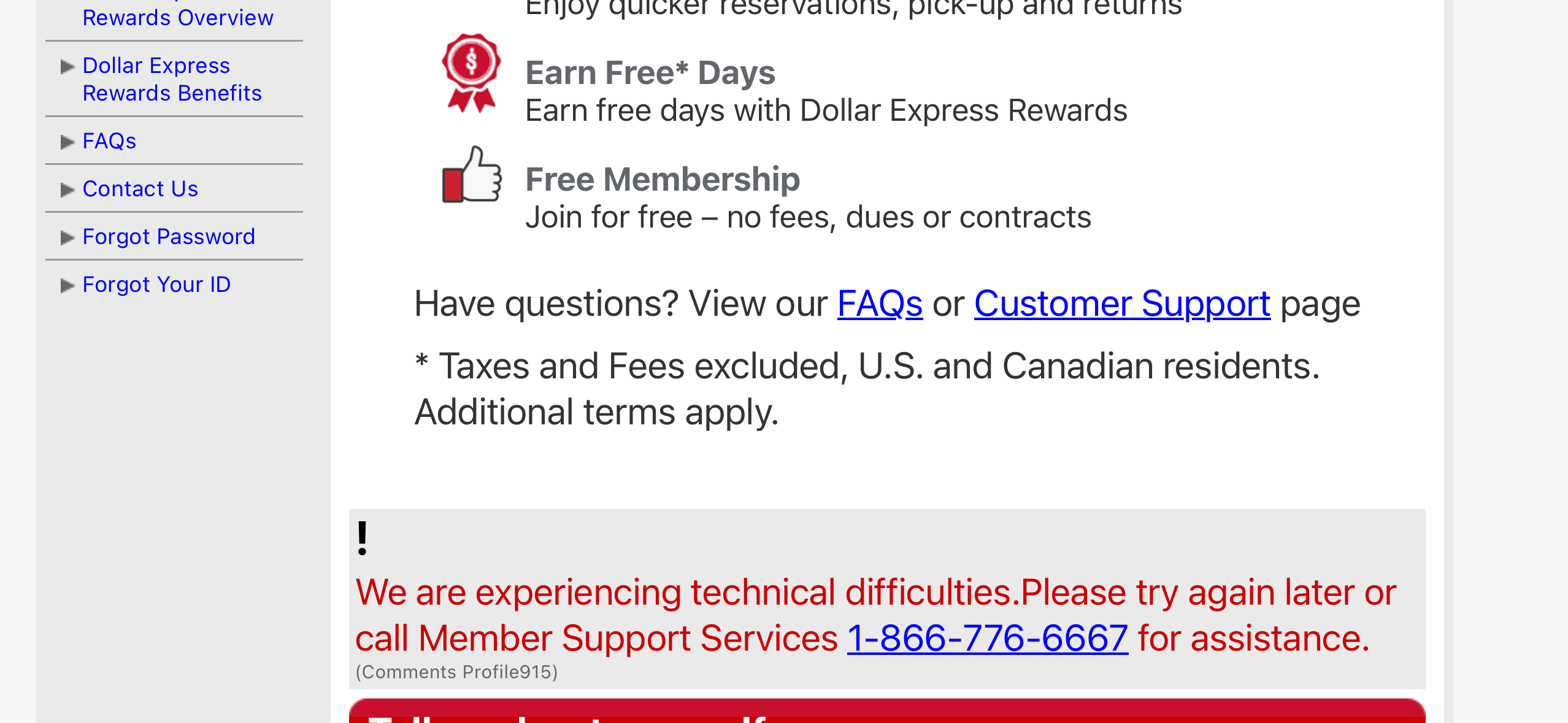 Ik probeer een dollar express kaart aan te maken, maar ik krijg constant een foutmelding. Er staat niet bij wat er niet goed is, maar je moet bellen met de klantenservice.