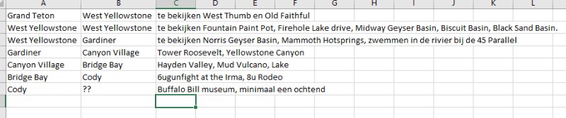 Ik heb flink zitten puzzelen aan mijn reis. Het is in de tussentijd bijna 5 weken geworden i.p.v. 4 weken.In de grote lijnen is het al aardig rond. In Yellowstone gaan we camperen, campgrounds zijn geboekt. Alleen de vliegtickets zijn nog niet geboekt. Ik ben aan het wachten op een goede aanbieding. Mijn vrouw wilt eindigen aan het strand dus daarom heb ik San Diego meegenomen in de planning.