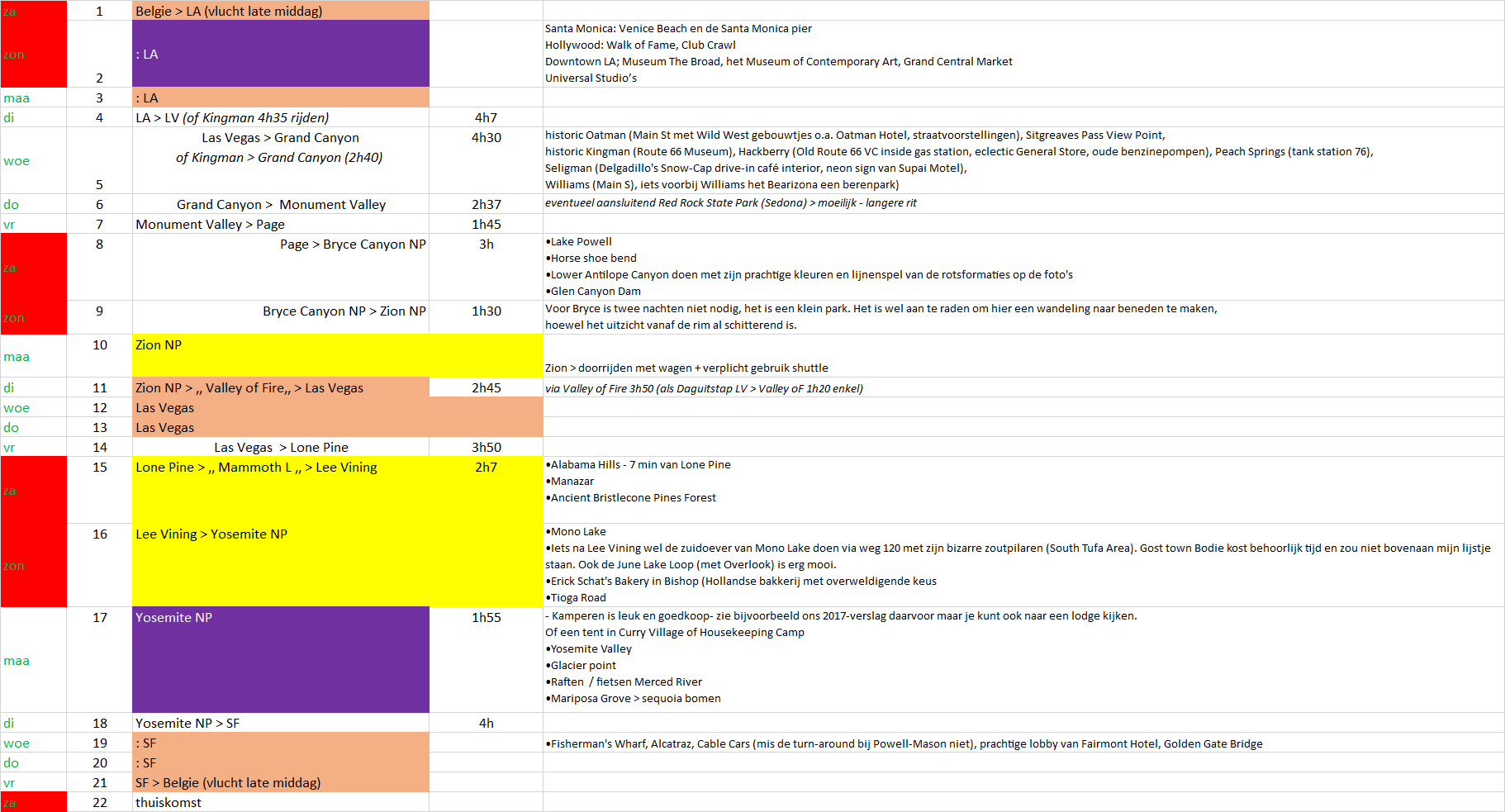 @ericvdvlugtericvdvlugt schreef: ↑10 sep 2021, 10:08LV -> via Kingman -> Grand Canyon -> Monument Valley -> Page -> Bruce -> Zion -> Las Vegas -> Death Valley -> Lone Pine / Lee Vining -> Yosemite -> SF -> Highway 1 -> Los Angeles.
