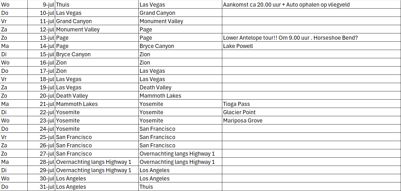 Sequoia dan toch ook maar geschrapt nav jouw reactie. We willen niet een te gehaaste reis en de tijd nemen voor alles. Mijn 2 dochters willen natuurlijk heel graag naar de steden. Daarom daar wat meer dagen voor uitgetrokken. Nu 1 dag LA geschrapt en daarvoor een extra dag langs de kust gepland. Ik denk dat ook dat heel relaxt is voor ze na het horen van goede verhalen van een collega!