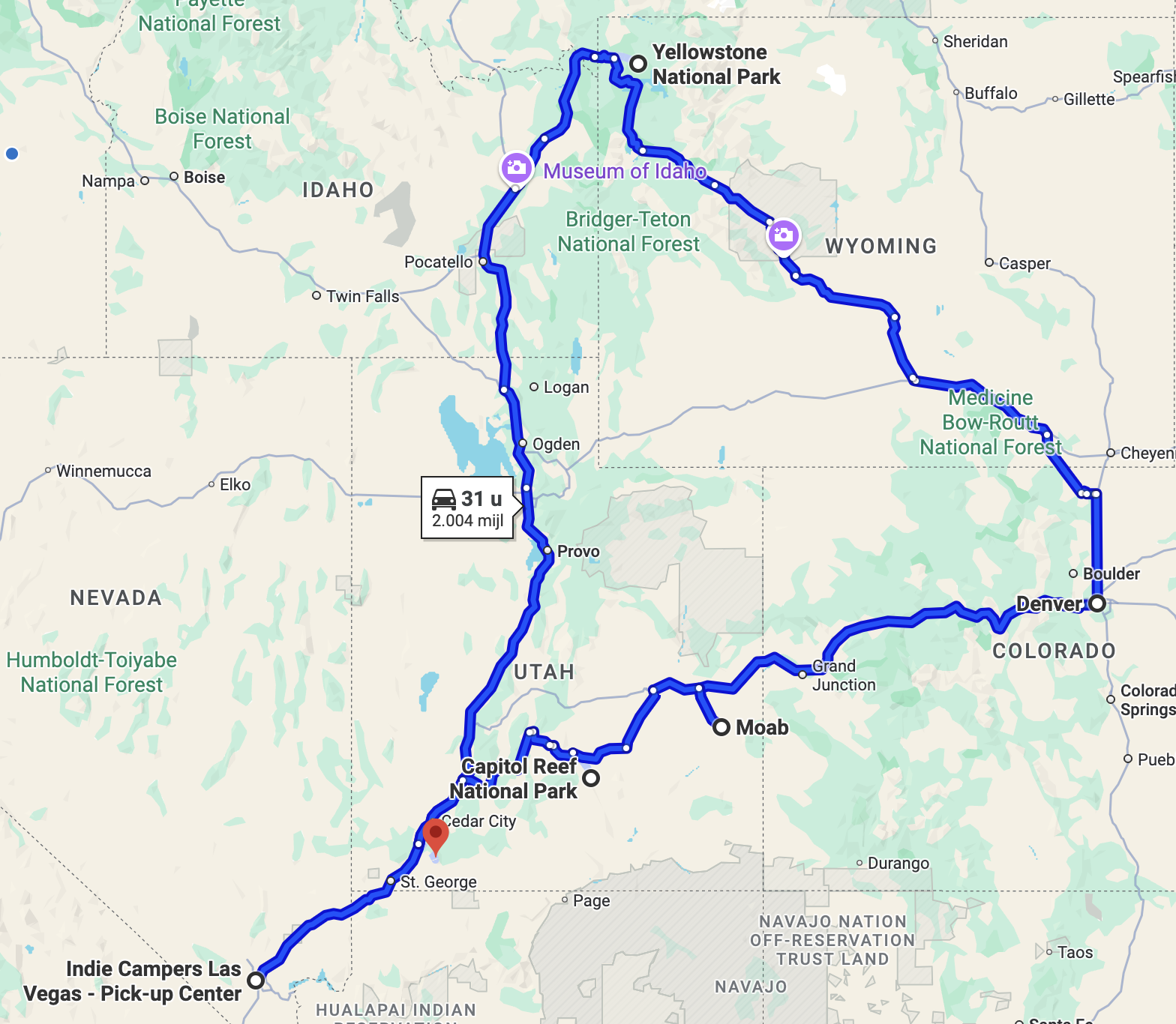 Wij deden een soortgelijk rondje in 2016. Alleen niet vanuit Las Vegas, maar vanuit Denver met de auto in 25 dagen. Goed te doen. Denver zelf zou ik overslaan, maar Colorado is natuurlijk heerlijk in de zomer.