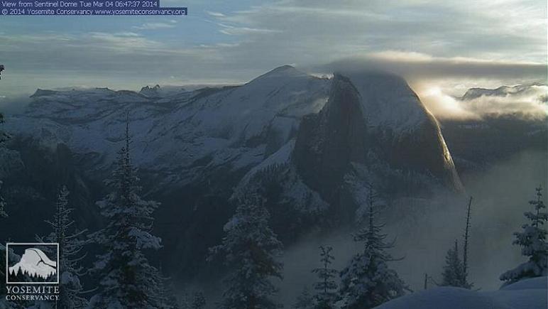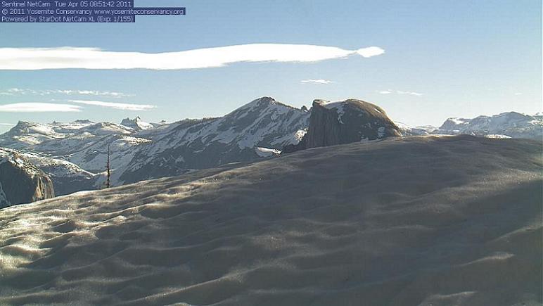 Hieronder Half Dome zoals het er nu uit ziet op de webcam en daaronder in 2011 - toen de pas op 18 juni openging.