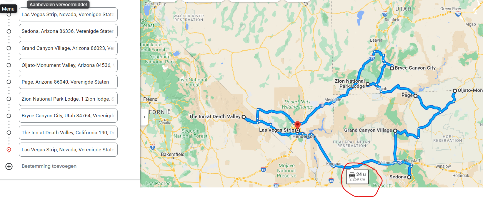 Met een rondje Las Vegas en Death Valley en de kust is dit een mogelijkheid: