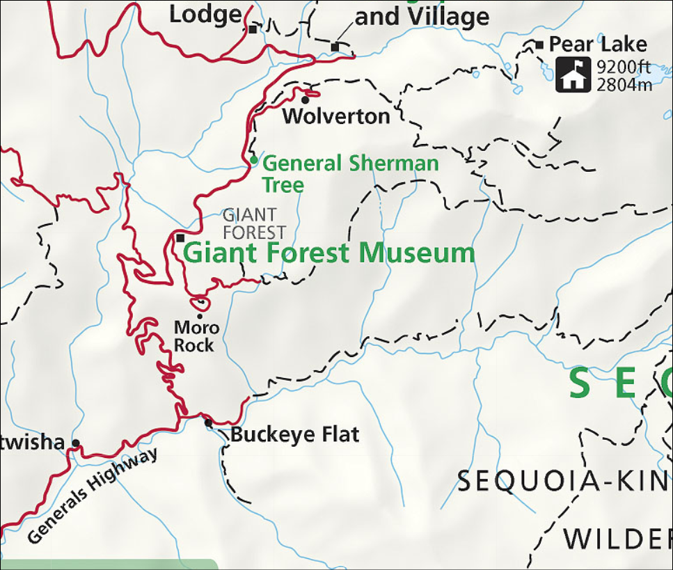 Ik denk dat je via de CA180 het park binnenrijdt en weer verlaat? Dan heb je het ergste stuk van de Generals Hwy niet. Maar als je naar Lodgepole of Cedar grove rijdt zul je wel de nodige bochten hebben. Je kunt het op GoogleMaps bekijken.